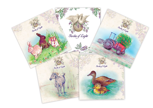 Using the magical imagery from the book, ‘The Garden of Light – A Journey of Creation’ these gift cards, invoke the Garden of Light property and its exquisite form, inviting you further to touch and feel the very animals themselves in their daily happy play.